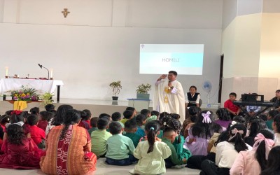Misa syukur pembelajaran semester genap 2026, SMP Swasta Assisi Pangkalan Kerinci menyelenggarakan Ibadah pada hari Senin, 6 Maret 2026 di aula sekolah. Ibadah diiku