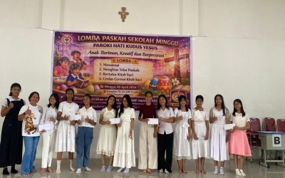 Minggu, 05 April 2026 dalam rangka memperingati Hari Raya Paskah, anak-anak Sekolah Minggu Gereja Paroki Hati Kudus Yesus Pangkalan Kerinci mengadakan kegiatan peray